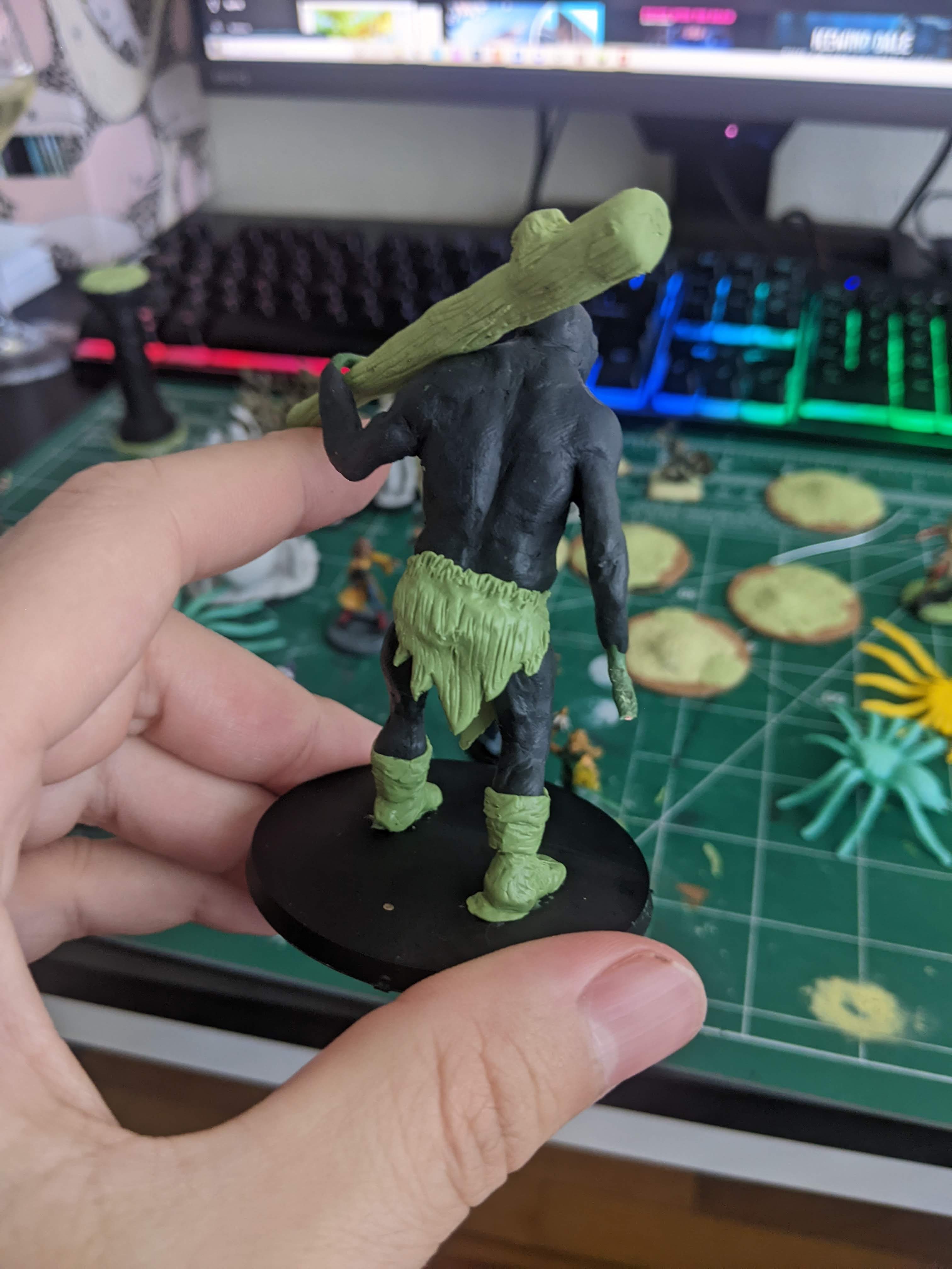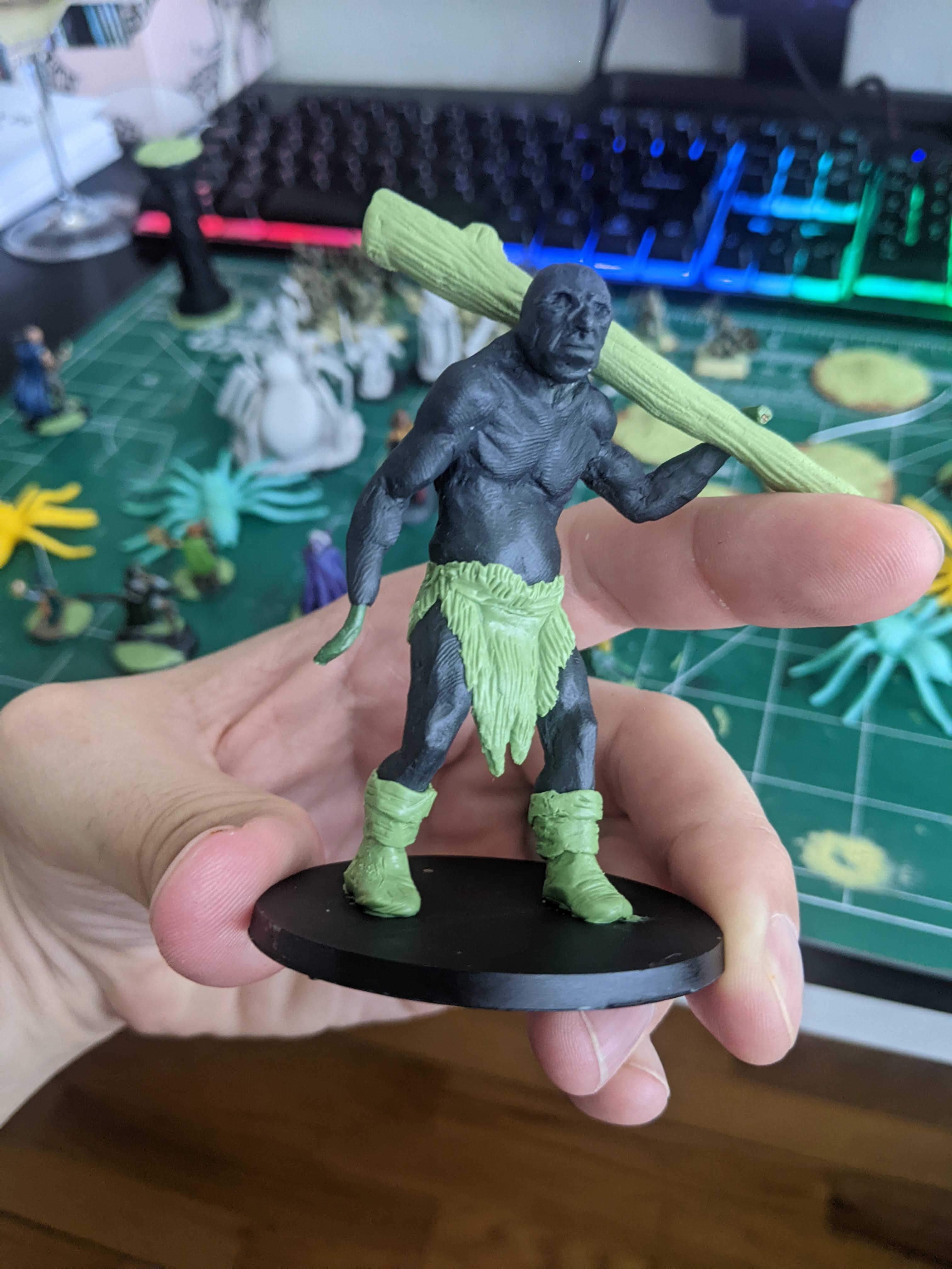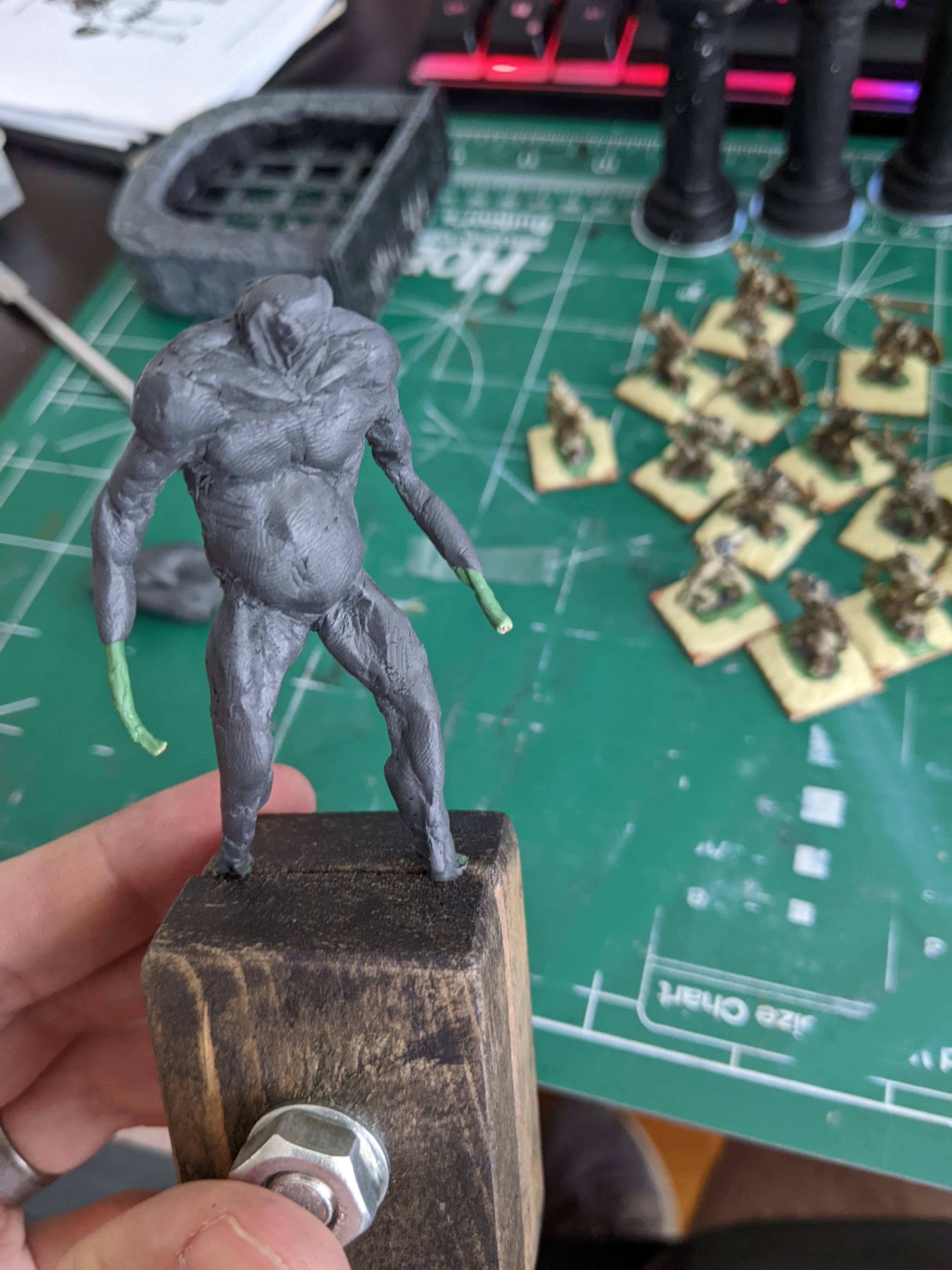 I’ve been brainstorming on a new campaign setting recently and part of that is my plan to include the use of miniatures for combat situations with the Chainmail rules. As an experiment, I wanted to give sculpting my own miniature a shot. The sculpt I wanted to try first was my own take on the giants in the local area.