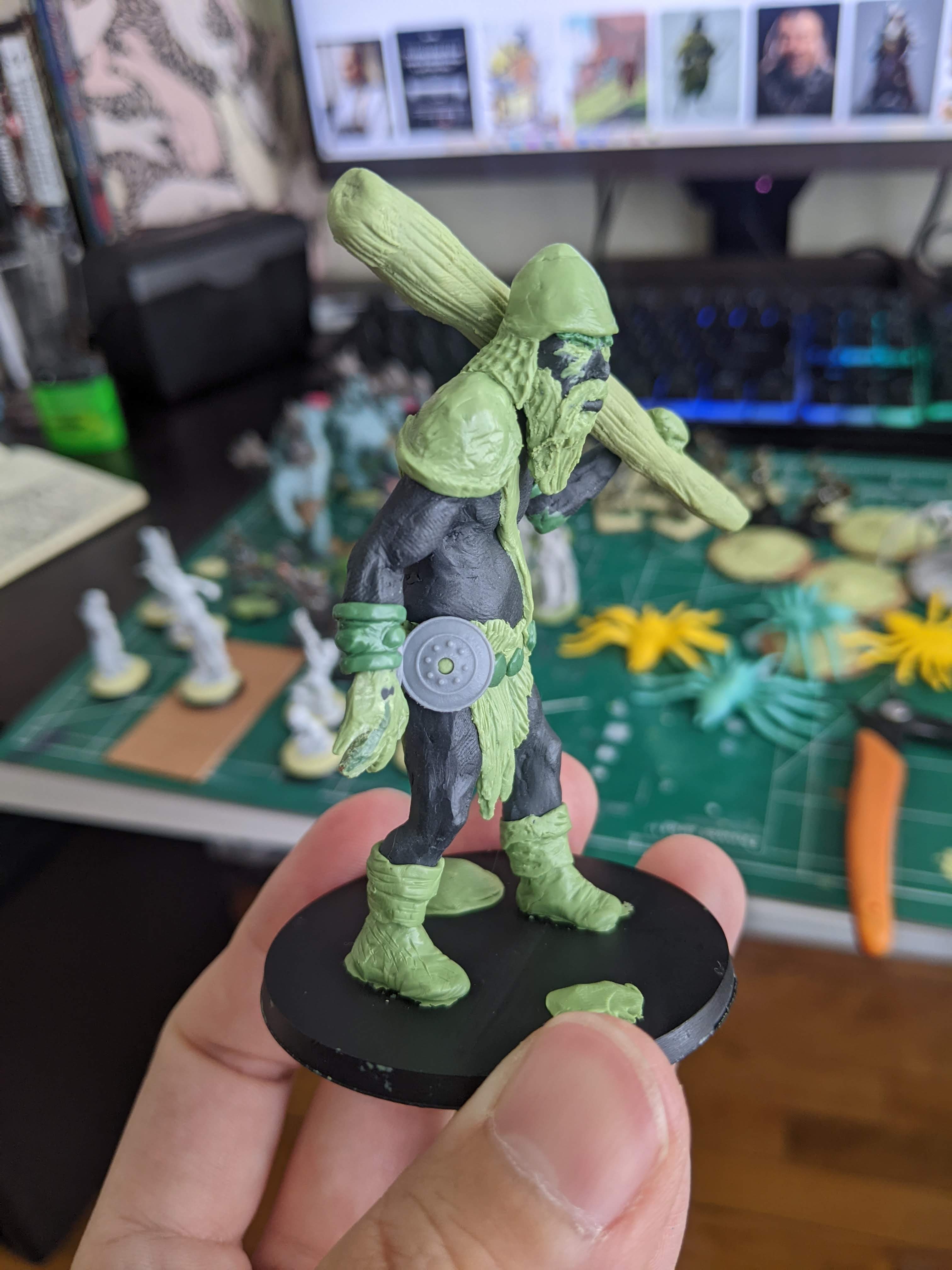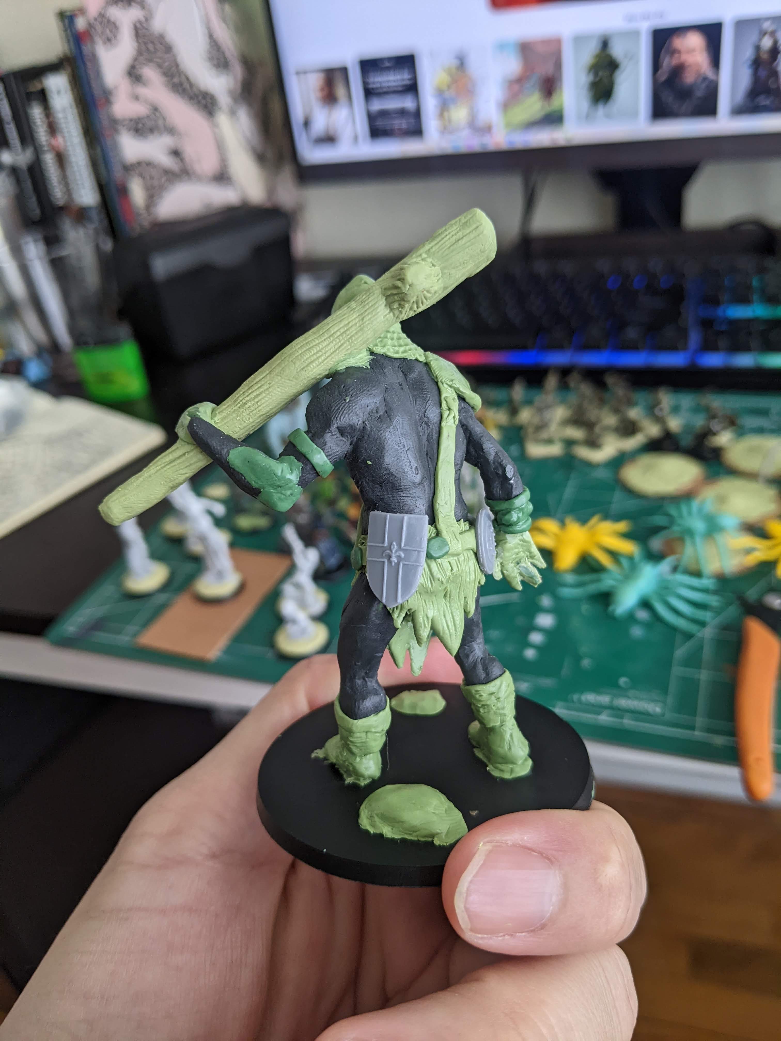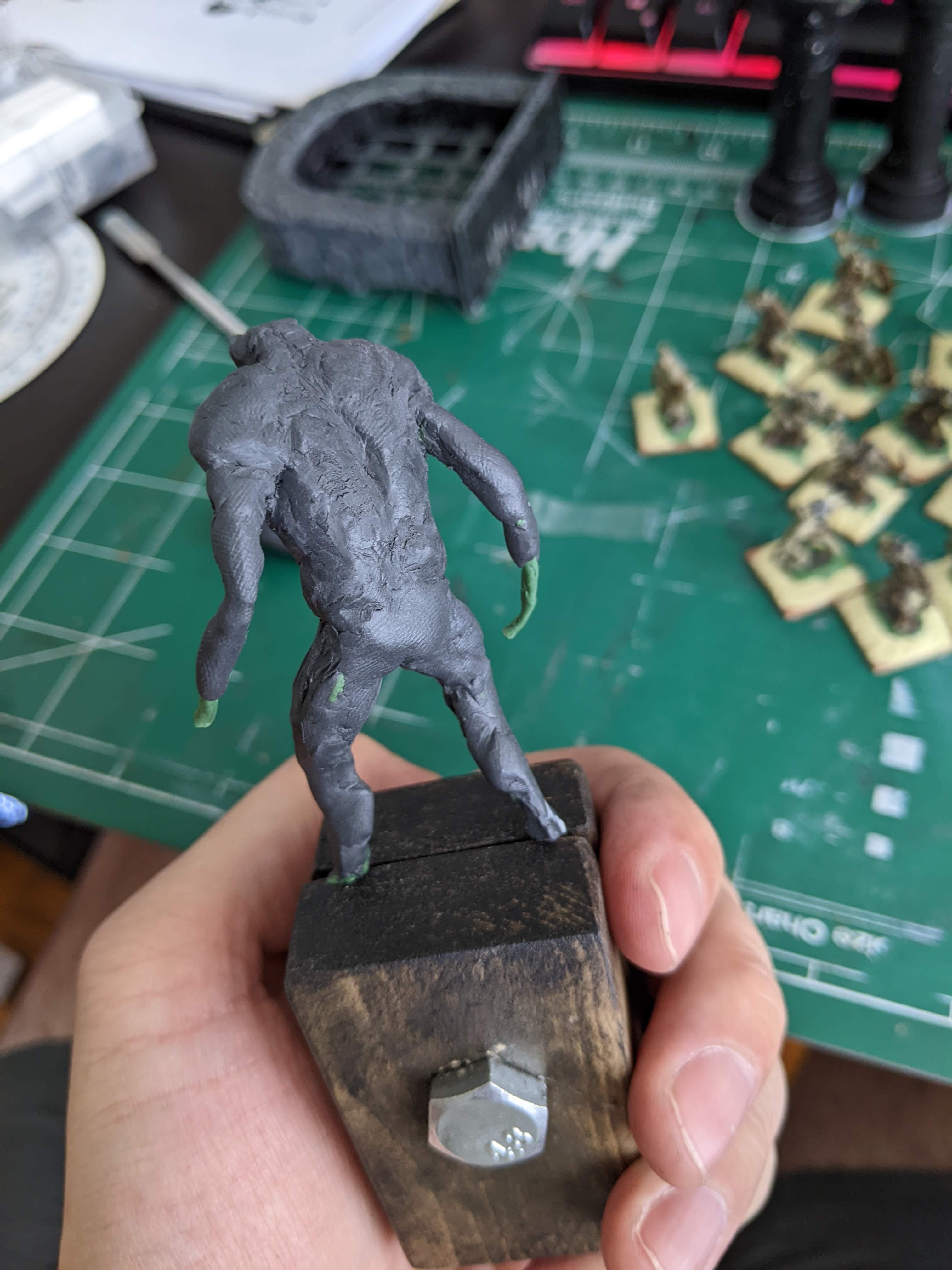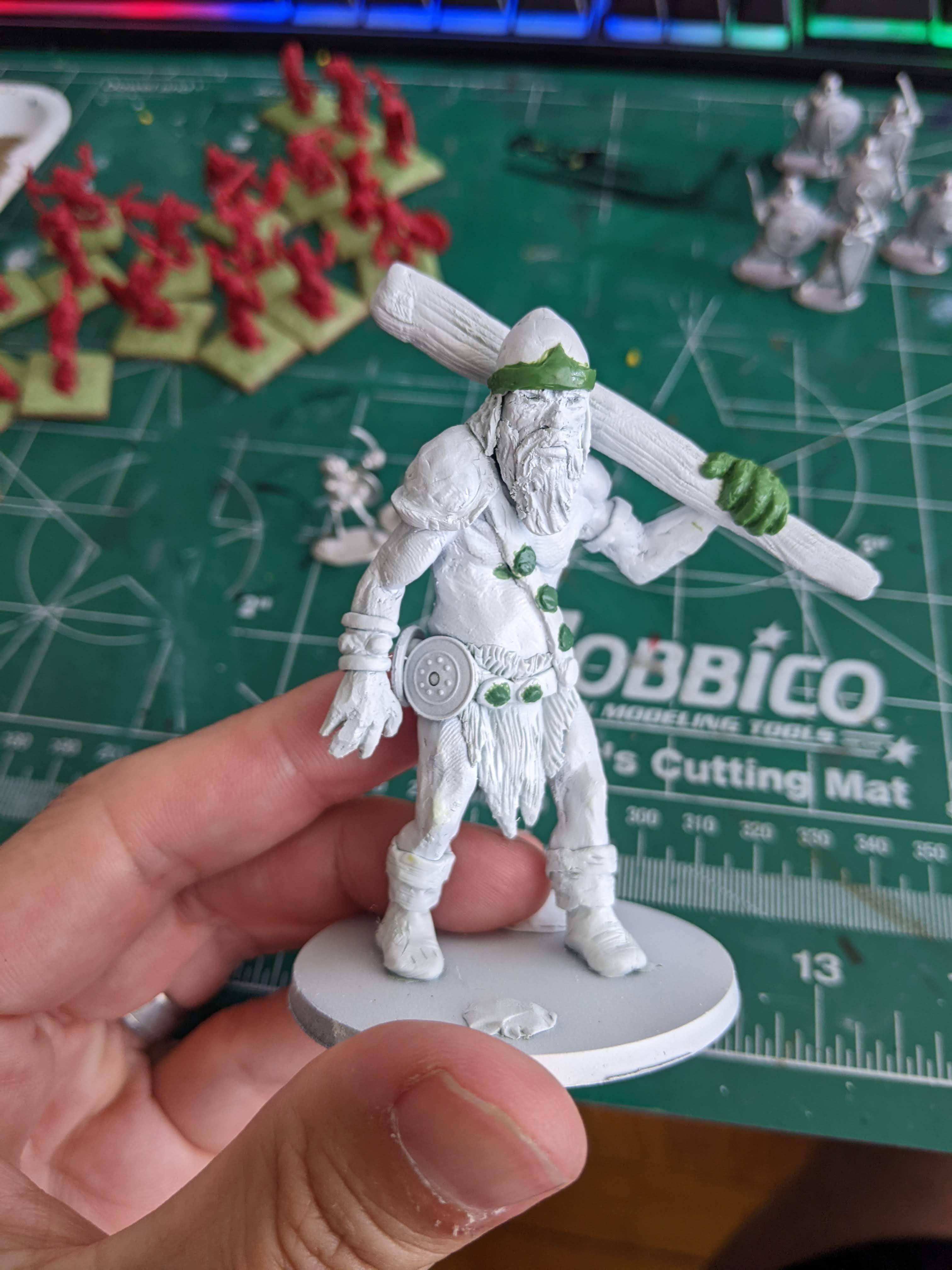 I’ve been brainstorming on a new campaign setting recently and part of that is my plan to include the use of miniatures for combat situations with the Chainmail rules. As an experiment, I wanted to give sculpting my own miniature a shot. The sculpt I wanted to try first was my own take on the giants in the local area.